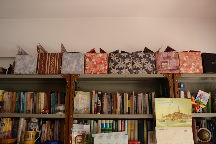 ¡Hola! Hoy les traemos una propuesta muy fácil y sencilla para empezar a modificar un ambiente. Esta es una pared ocupada por una biblioteca donde queríamos empezar a introducir liviandad y colores, pero antes de hacer una transformación importante, aprovechamos las caras de las cajas que hay sobre ella para hacer una pequeña galería de fotos enmarcadas en un color crema.