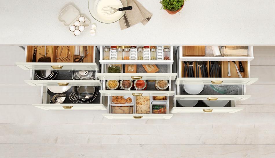 Por otro lado, también hay que establecer en el diseño las zonas de almacenaje, en función de lo que necesitas guardar: espacios de despensa, armarios para menaje y utensilios, vajilla, etc.
