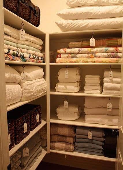 Si tenemos una casa grande y con muchas prendas de ropa de cama será muy útil que las clasifiquemos antes de guardarlas y que establezcamos un orden. Así, nos facilitaremos con el nuevo cambio de temporada encontrar rápidamente lo que andamos buscando. Por ejemplo, podemos clasificar las prendas por tamaño de cama o por tipos (mantas, sábanas, edredones, etc). Si vamos a guardar la ropa en cajas de almacenaje de plástico poner etiquetas o pegatinas nos ayudará a saber que hay dentro sin necesidad de tener que ir abriéndolas.