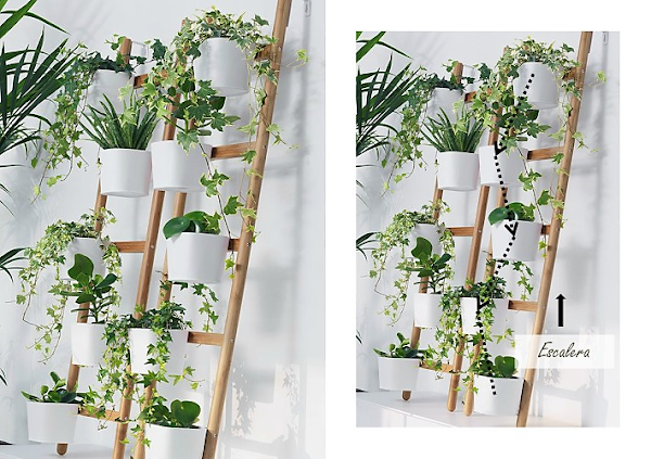 COMPOSICIÓN DE PLANTAS EN FORMA DE ESCALERA Este estante escalera es fantástico para crear una composición de plantas. Diferentes macetas y plantas para decorar cualquier estancia, desde una cocina, baño, comedor, salón.......