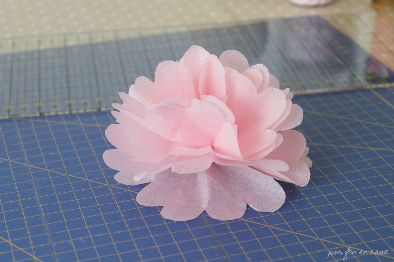 Al desplegar el papel aparece la forma de una flor plana. En el siguiente paso le daremos ese volumen que las hace tan bonitas.