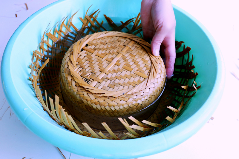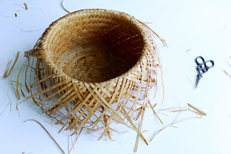 Inicialmente pensé en cortar las fibras por dentro de la cesta, de modo que