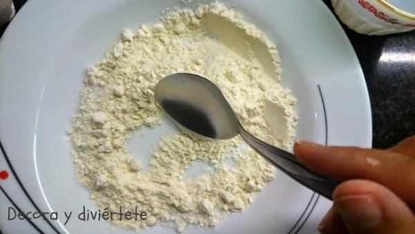 Es primer paso es poner una cucharada de sal en un bol o plato , como te sea mas cómodo , las medidas son 1 parte de sal por 2 partes de harina .