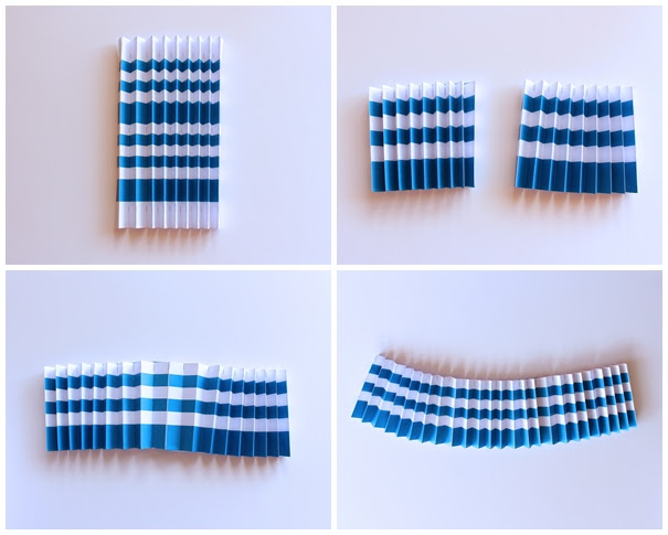 Doblar el papel por las líneas marcadas haciendo zig-zag, formando un acordeón. Veréis que se dobla de maravilla, es facilísimo y queda una doblez limpia sin arrugas.