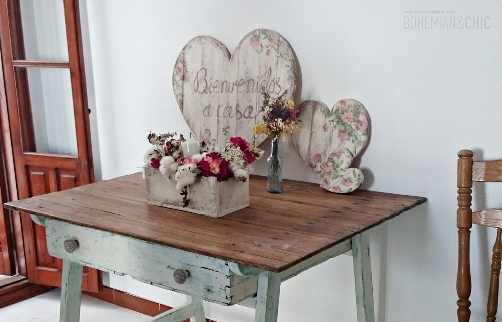 Mira lo bonito que lució en nuestro taller de Chalk paint que dimos a principios de octubre con estos corazones sobre la antigua mesa tocinera que recuperamos hace algún tiempo. En otro tutorial te mostraré como hice los corazones.