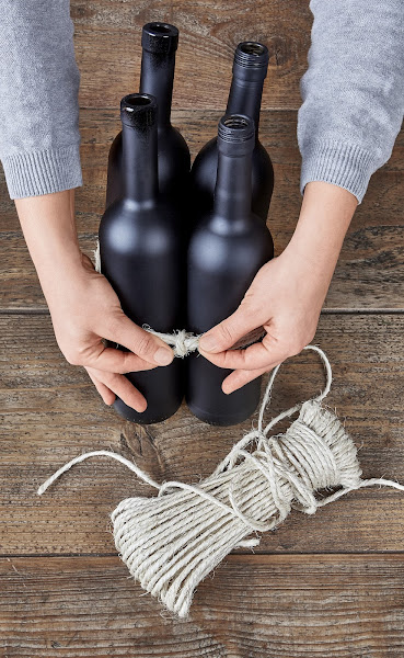 - 4 botellas de cristal ( guarda las botellas de vino que vacíes , son perfectas para este centro )