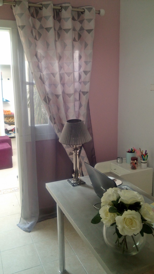 Como ves estas son las nuevas cortinas de mi estudio que te mostré en este post, las compre en Leroy Merlin y ya me venían con la cinta termofusible, si, así fue como la descubrí.