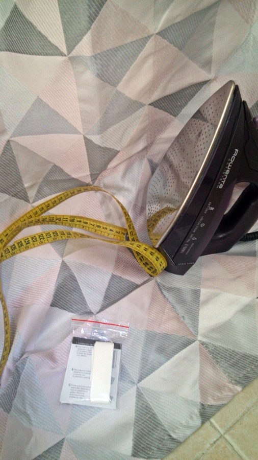 Como ves en la primera imagen, por esa linea vamos pegando la cinta termofusible con la ayuda de la plancha. Solo hay que ir colocando la cinta y pasar la plancha caliente por encima. Es super sencillo. En la segunda imagen ves como se ha adherido a una cara de la tela y ya le quitaríamos un papel que cubre la cinta doblamos la tela y volvemos a pasar la plancha .