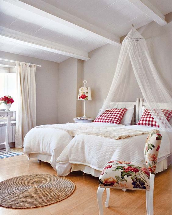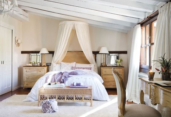 Siempre me han gustado las camas con dosel. Creo que le dan un aire romántico a cualquier habitación, además de tener un lado práctico innegable cuando llegan los meses de verano y la fina tela de los visillos ayuda a mantener lejos de nuestra cama a los molestos mosquitos.