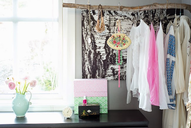 Lo natural esta de moda y si buscas algo original para dejar colgada la ropa del día o la que te vas a poner el día siguiente nada mejor que "un perchero rama" además, puedes acompañarlo como aquí de una cómoda Malm de 6 cajones (clic) con la que disfrutarás de un montón de espacio extra.