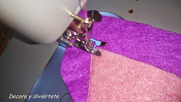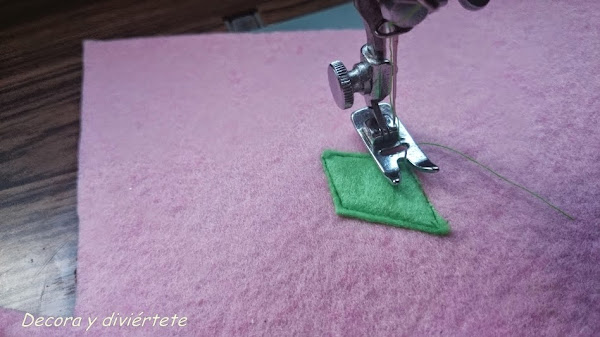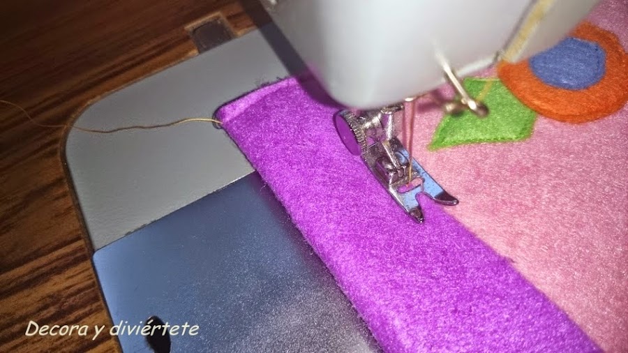 Y ahora ya solo queda pasar por la máquina de coser o si queréis pegarlo con pegamento especial para fieltro también se puede coser a mano .