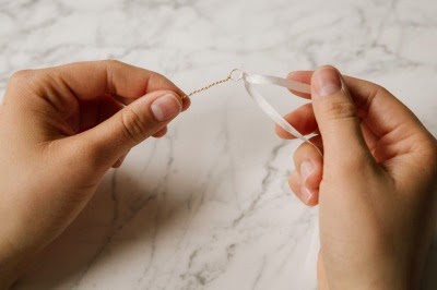 Debemos cortar a la medida deseada 2 pedazos y colocar en el arco que hemos dejado para ello en cada extremo mediante un pequeño nudo.