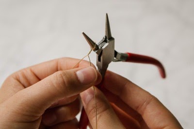 PASO 2: Dobla la longitud del alambre por la mitad, tal como se ve en la foto inferior, alrededor de los alicates de punta redonda, ahora ya puedes empezar a retorcer el alambre, continua hasta que tengas 4 cm más o menos hecho.