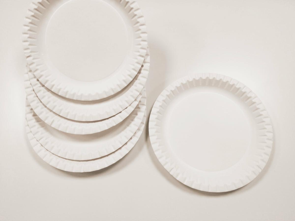La lámpara original de platos de cartón que parece de diseño es un proyecto muy fácil de hacer. Dispón tus materiales en una superficie despejada que no te importe manchar (o pone encima un hule, cartón o similar).