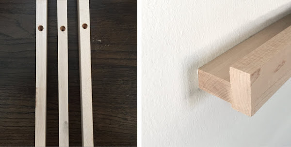 Tal y cómo hicimos con el perchero de madera diy , se han hecho unos taladros redondeados en los listones para colocar los tornillos que irán a la pared, y luego el otro listón que hará de soporte va pegado al anterior, aquí os dejo el enlace en el que lo tenéis bien detallado por si os animáis a hacerlas , (pinchando aquí), su autora, la bloguera Sarah Sherman Samuel es también quién hizo el fantástico proyecto IKEA HACKS de cómoda para la habitación infantil que os enseñé aquí y que tanto nos gustó.