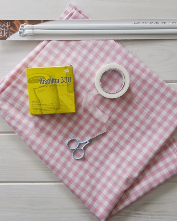 Para ella necesité otra pieza de tela, unas barritas que son extensibles y que he visto tienen en todos los bazares chinos y ferreterías, fliselina (a la venta en mercerías), tijeras y plancha: