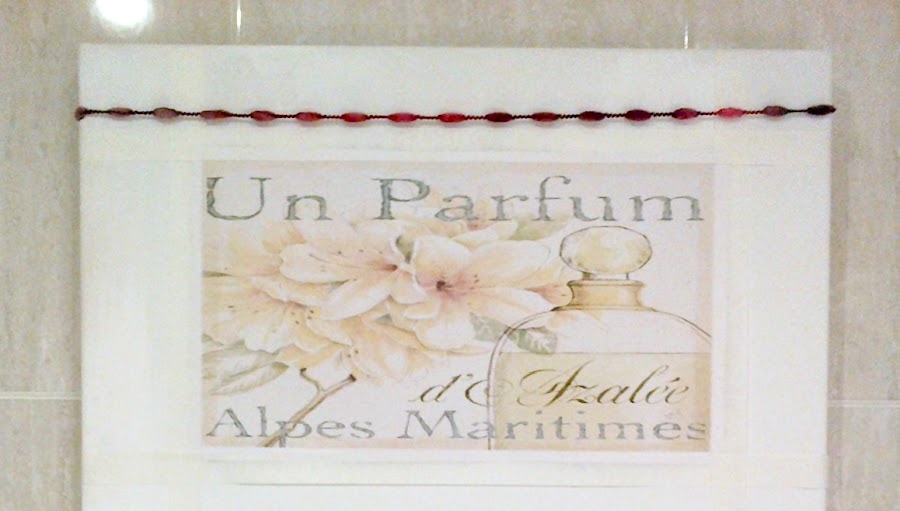 En este caso he utilizado un lienzo de tela, siempre tengo alguno en casa para ponerme a pintar cuando me apetece, pero se puede utilizar perfectamente una tablita fina (unos 5mm sería suficiente)de esas que venden por cuatro duros en Leroy. (Yo es que soy fan de Leroy Merlin). Bueno, pues la base es esta y después aplicaremos la técnica del DECOUPAGE, se elige una bonita imagen de baño (Como digo infinidad de veces, me encantan las de estilo Vintage).