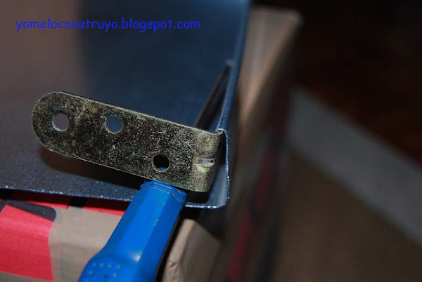 También vamos a usar, y por lo tanto a taladrar, los ángulos de la estantería, como base de las ruedas, para que la chapa no se deforme bajo ellas.