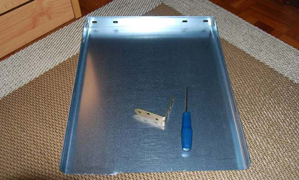 Ya he dicho que en mi caso la balda no es del tamaño adecuado. En mi caso es mas larga que la tabla base del mueble. Para adecuar las medidas podemos usar una simple sierra de metales. Las herramientas eléctricas son mas cómodas, pero casi seguro que deforman mas la chapa.