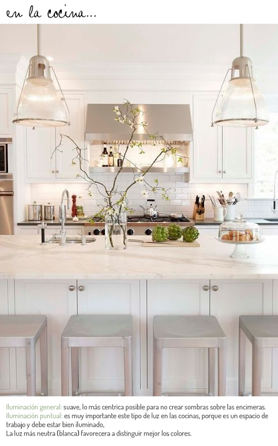 La iluminación puntual en una cocina tiene mucha importancia, ya que nos ayudará a la hora de trabajar. Al igual que si tenemos alguna isla o mesa para comer la luz la pondremos puntual.