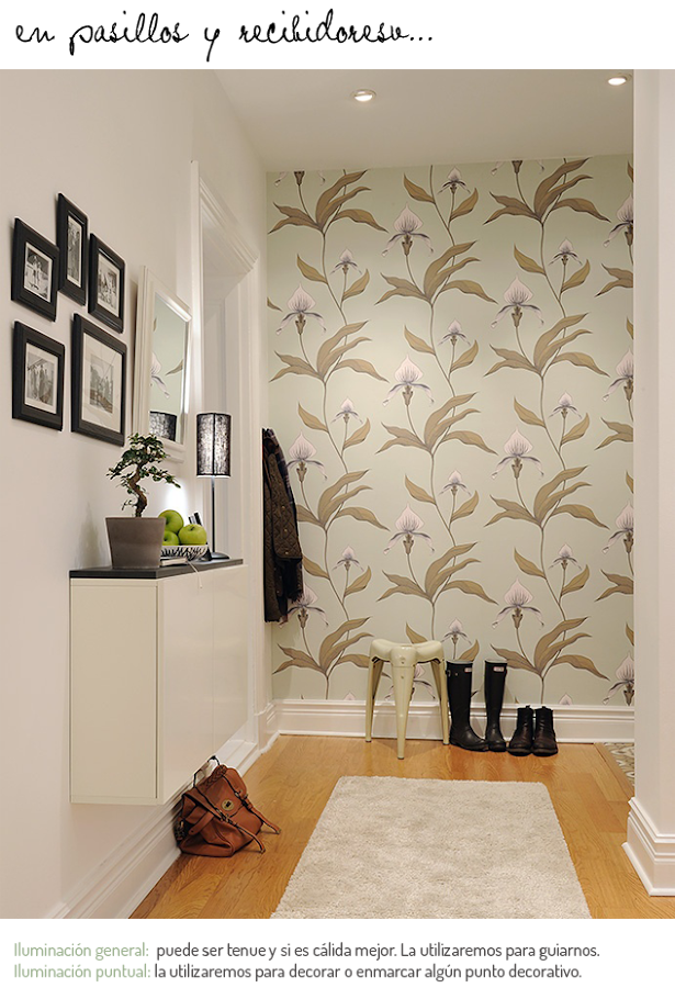 Personalmente me encanta los fosos para estas zonas de paso, que crea un luz muy agradable y conduce a la perfección, podemos acompañarla con alguna luz puntual para enfatizar algún detalle decorativo.