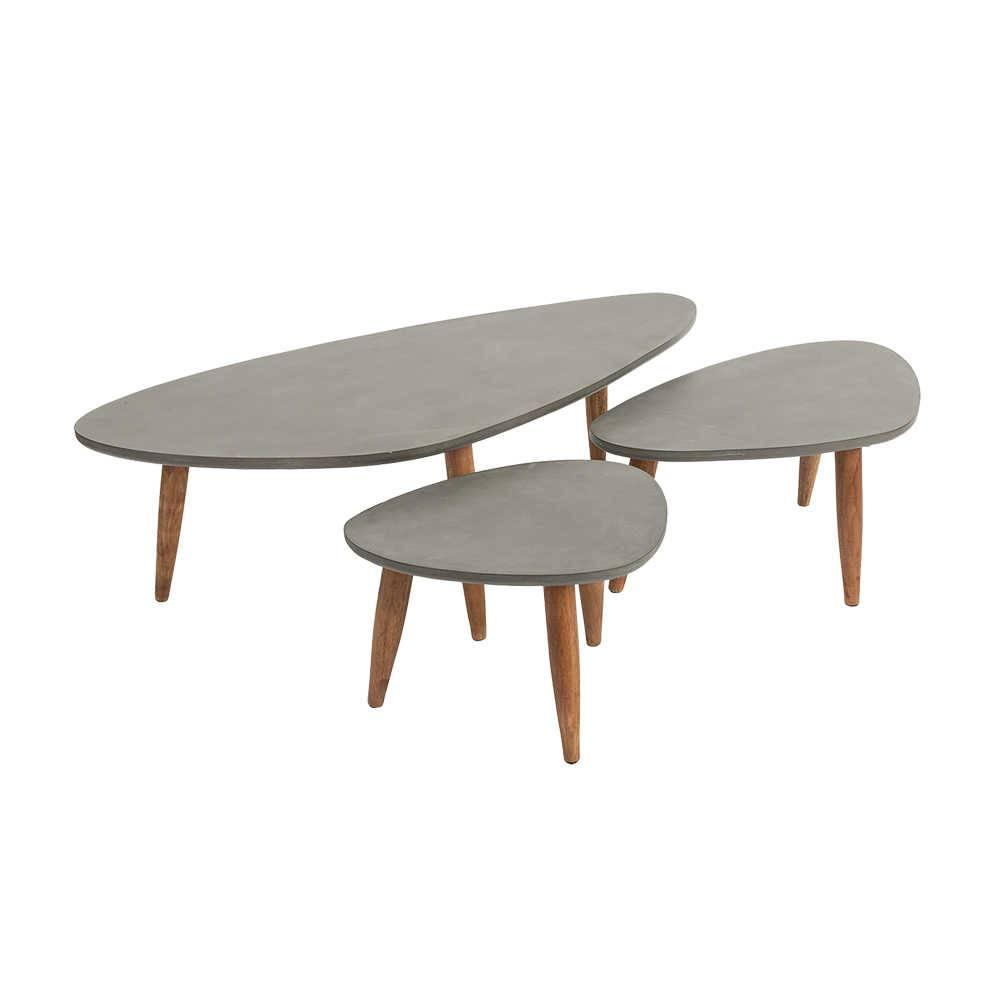 La mesa de centro puede ser un juego de mesitas que puedas mover o un pouf que sirva como mesa de centro.