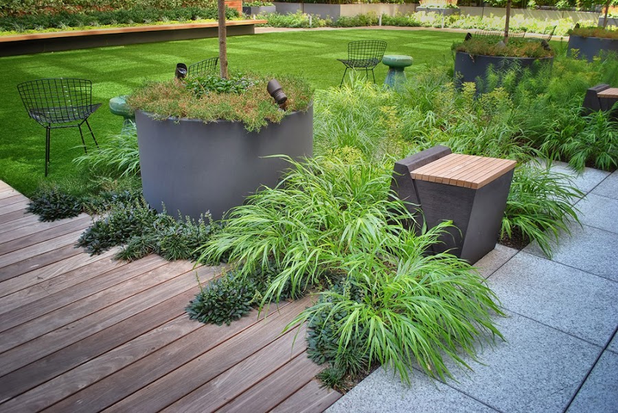 Es una solución práctica para las zonas en las que no se puede instalar césped natural por falta de suelo, de luz o de espacio.