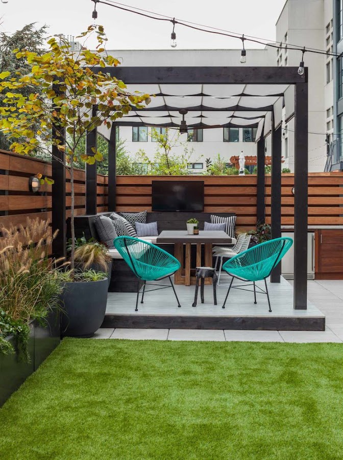 Una terraza, como cualquier otra espacio, puede ser personalizada con césped artificial. ¡Le damos carácter y originalidad! ¡El suelo también decora!