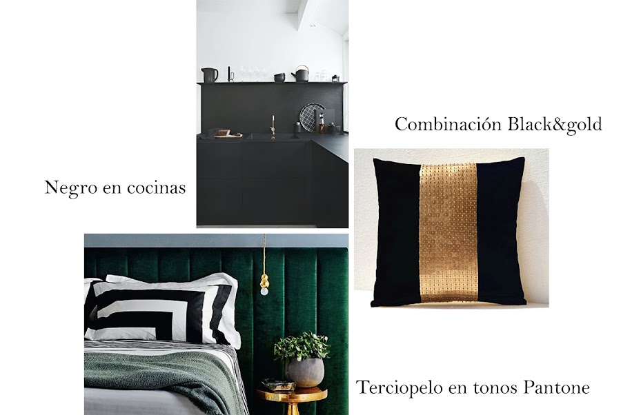 - La mezcla de negro y dorado, sobre una base blanca o aligerada con este color, pasa de ser algo ostentoso a ser un complemento acogedor.