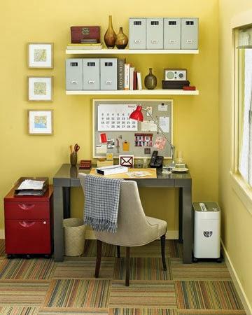 Los colores que se utilizan generalmente, son claros, para atraer la luz natural y que el ambiente se pueda ver más espacioso. Por otra parte, muchas veces nos vemos obligados a instalar nuestra pequeña zona de trabajo integrada en otro espacio, por lo que si conseguimos que esta vaya de acuerdo a la decoración total del ambiente esto nos permitirá que todo el espacio luzca en armonía.