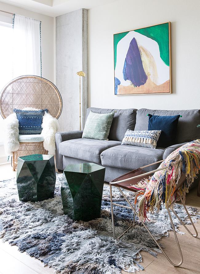 Puedes empezar por definir cuáles son los elementos imprescindibles (el sofá, una butaca, la mesa de centro, lámparas…) y los complementarios (textiles, alfombras, accesorios, decoración de pared…). Todos ellos, o la mayoría, pueden servirte para combinar colores y mezclar estampados.