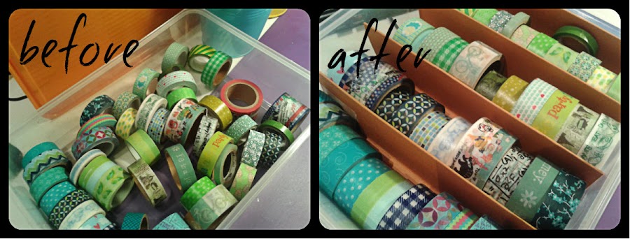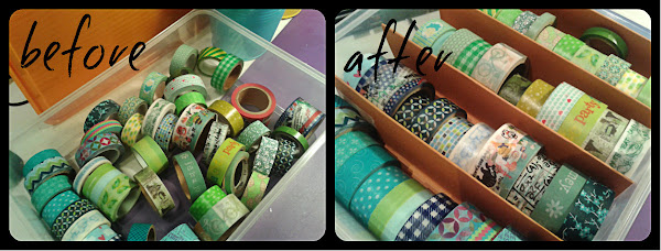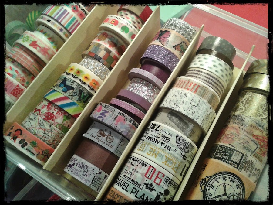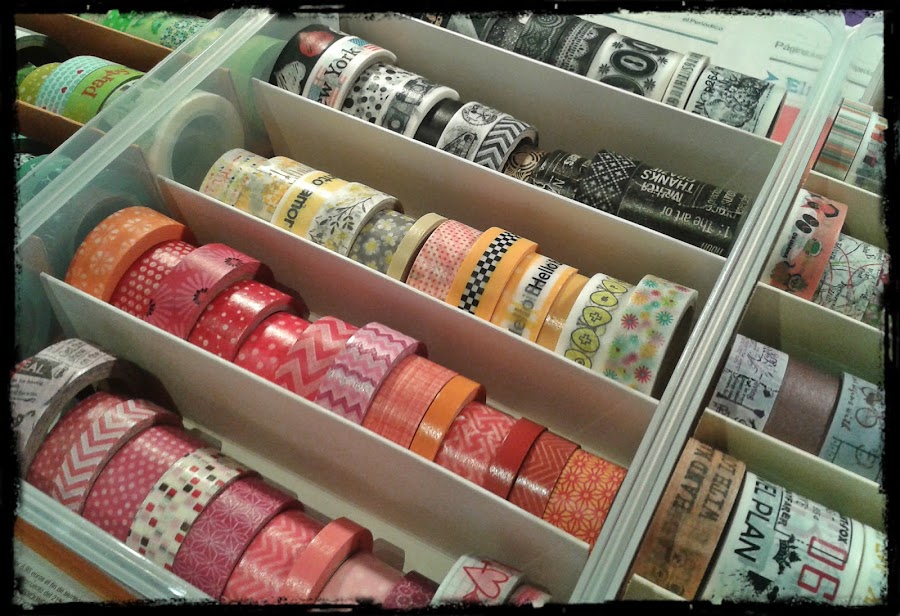 De momento tengo casi tres cajas llenas de washi tapes. Pero como sé que mi colección irá aumentando, ahora ya tengo la solución. Y además, los organizo por colores!!!