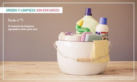 3. Ten todos los utensilios de limpieza a mano en un mismo cubo o cesto (como nos muestran en esta foto del blog Nuevas ideas, nuevos comienzos).