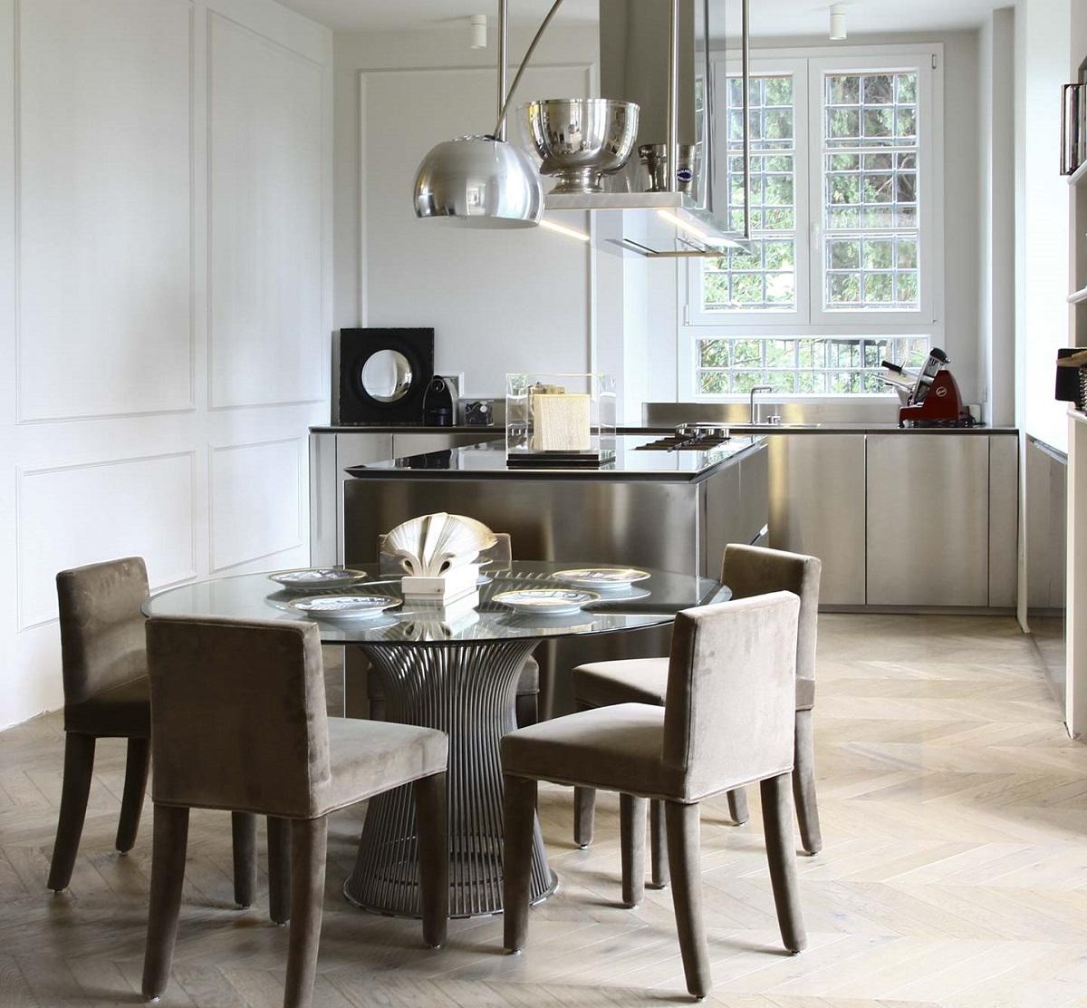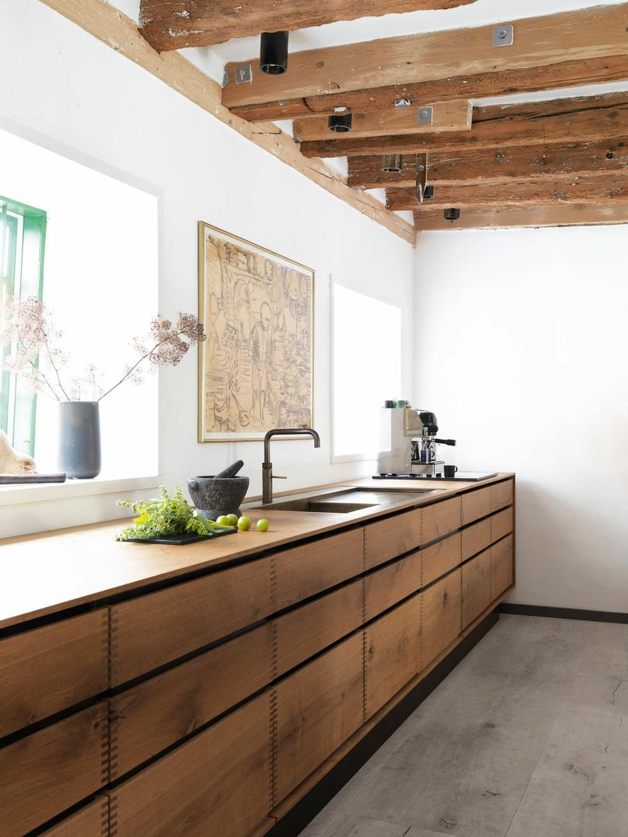 Entre otras características de la vivienda de hoy, la ausencia de color en suelos y paredes es la primera muestra y efecto nos encontramos. Aunque es mas la idea de ver una cocina sin armarios altos, lo que llamo realmente mi atención. Y es que cuando no ponemos en plan “orden” solo pensamos en mantener en oculto y a raya cada espacio y estancia. Buscamos armarios, alacenas, aparadores ...