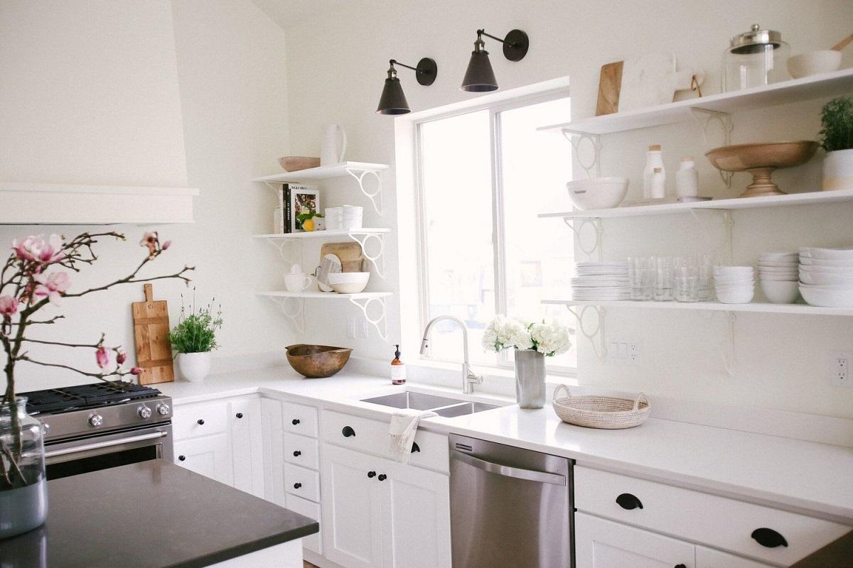 Fuente: pinterest Las baldas consiguen espacio de almacenamiento sin recargar el ambiente como lo harían los muebles altos. Aléjalas de la zona de cocción para que no se llenen de grasa ni suciedad.