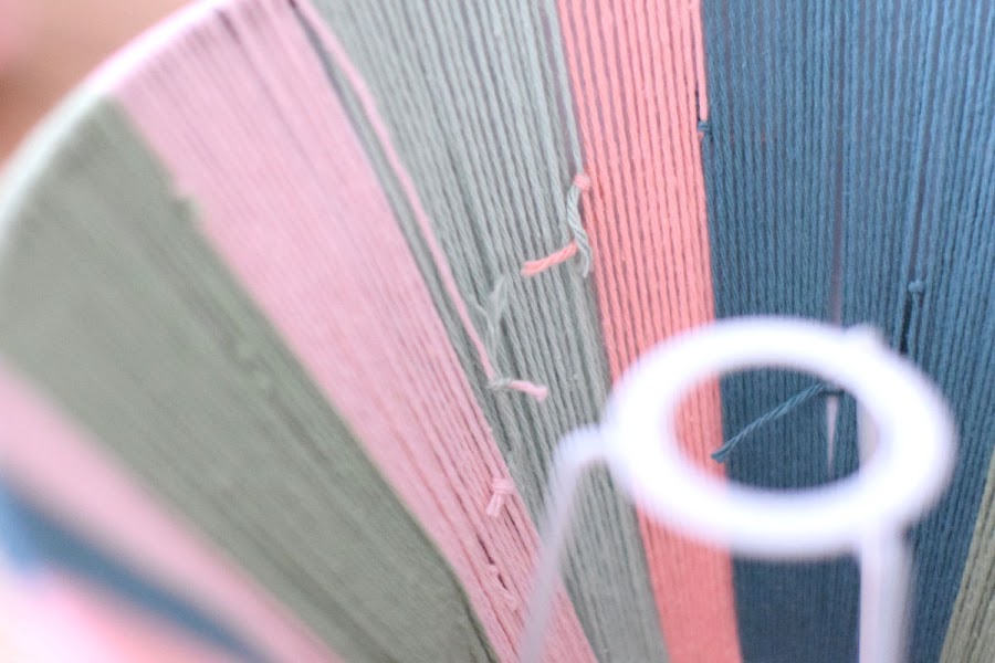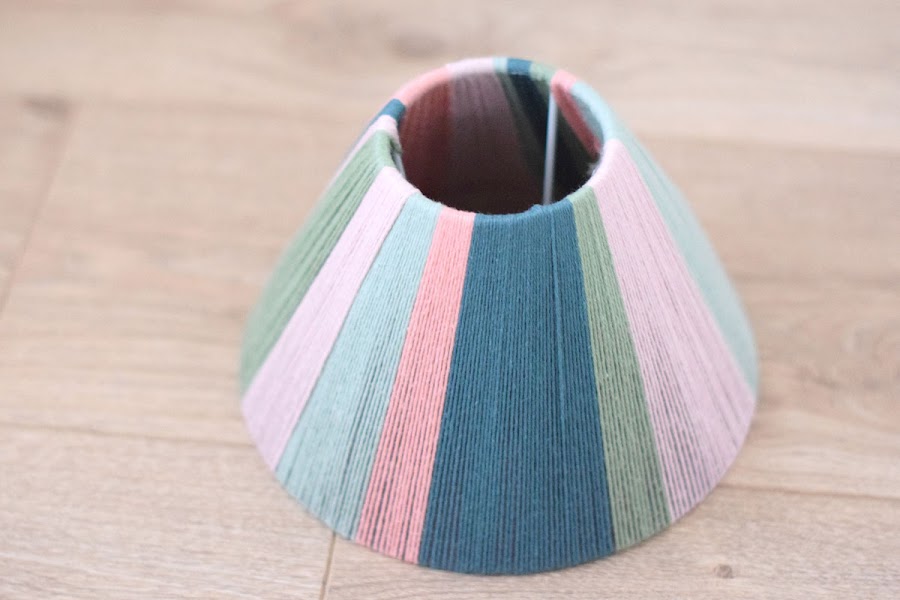 Como consejo, te diré que al ser una pantalla cónica, la separación de los hilos en la parte superior ha de quedar muy apretada. Mientras que en la parte de abajo hay que dejar una ligera separación entre ellos para que vaya cuadrando y las verticales se mantengan.