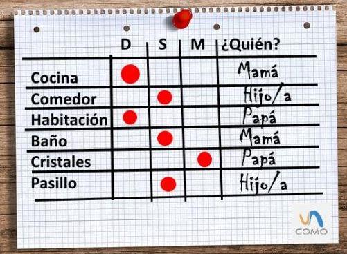 Para establecer una buena planificación te recomendamos que indiques en una plantilla las diferentes estancias de tu casa y los días en que se realizará la limpieza de esa sala. Además puedes incorporar las tareas a ejecutar en cada una de ellas, e incluso quién se encarga de realizarlas en caso de vivir con más personas.
