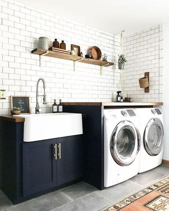 También resulta muy útil tener un fregadero en la zona de lavandería. Ya sé que no siempre es posible, bien porque no tienes espacio o bien porque no hay toma de agua. Pero un pequeño fregadero es uno de esos elementos que resultan enormemente prácticos y que después te alegras de haber incluido en el proyecto. Considéralo.