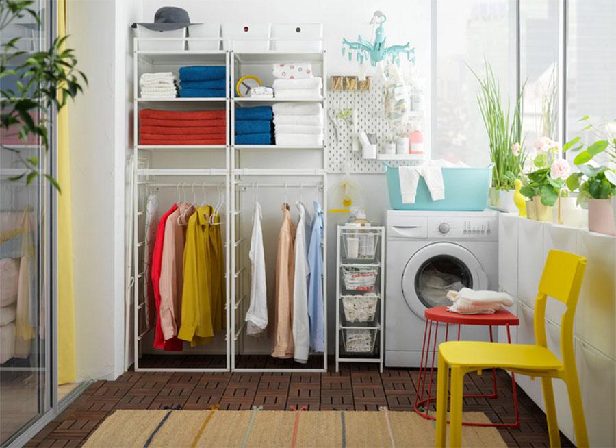 Una solución funcional consiste en combinar armarios cerrados con puertas y estanterías abiertas, que después podrás completar con algunas cestas o cajas en las que tenerlo todo bien separado y ordenado. En los armarios puedes colocar lo que quieres que esté oculto y fuera del alcance de los niños, por ejemplo. En los estantes abiertos guarda lo que uses con más frecuencia: el detergente que estás usando, las pinzas, la plancha, etc.