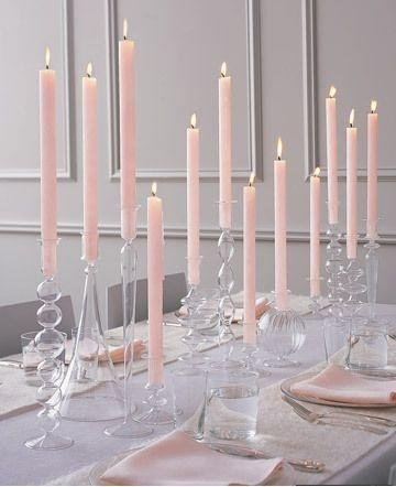 Si prefieres las velas, normalmente los candelabros de plata son los que se ven más elegantes. En el mercado hay algunos que imitan la plata y lucen muy bien. Las velas de los candelabros tendrán que ser o bien blancas o de color marfil y además inodoras para no alterar el gusto de la comida. En ciertas ocasiones, como por ejemplo en navidad, se pueden disponer de velas de color rojo, dorado, plateadas, etc. Las velas se deben encender cuando los invitados estén sentados en la mesa.