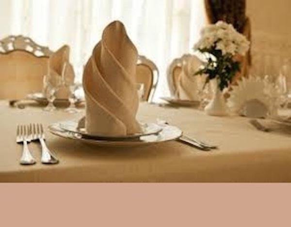 El mantel: El recomendable que sea blanco o de color marfil y muy bien planchado. Puede ser de una tela brocada o con diseño en el mismo color. En navidades se puede utilizar manteles con decoraciones navideñas.