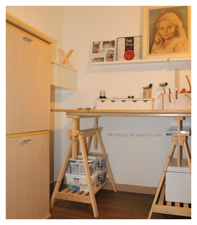 Todavía tenía muchos muebles en ella , así que esto es lo que hecho con algunos de ellos, para aligerar la habitación, y de paso darle la función que necesito en estos momentos.