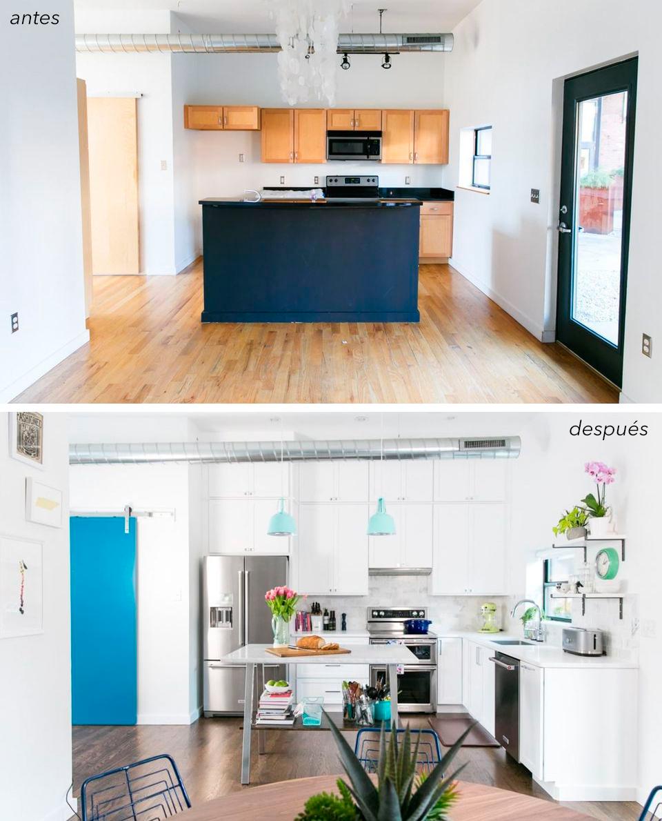 Solución para integrar una cocina en un hogar de espacios abiertos