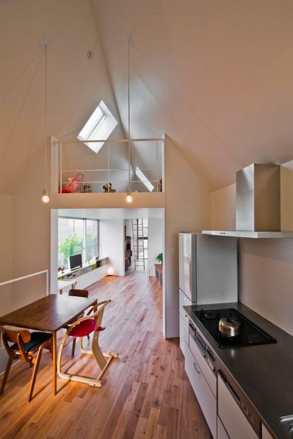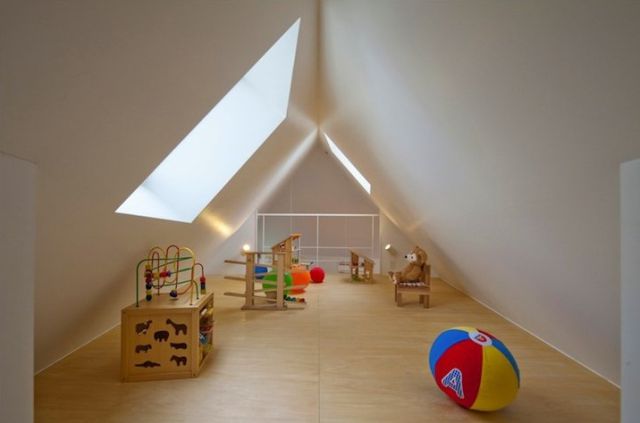 El arquitecto Kota Mizuishi aprovechó bien este terreno para construir una vivienda muy completa , hasta con cuarto de juegos.