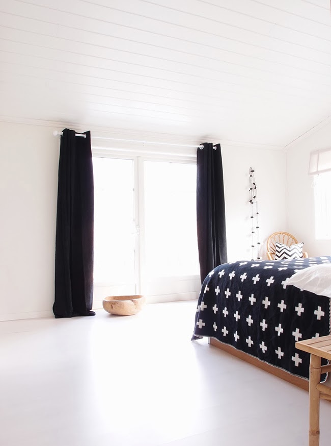 Se trata del dormitorio de invitados de Diana Ousdal, creo que lo hemos visto en mas de una ocasión en el blog y es que esta blogger tiene una gran capacidad a la hora de cambiar textiles para actualizar cualquiera de las estancias de su casa, una colcha o funda nórdica blanca, cojines y plaid a juego (de color no de estampados) y algunas piezas en fibras naturales