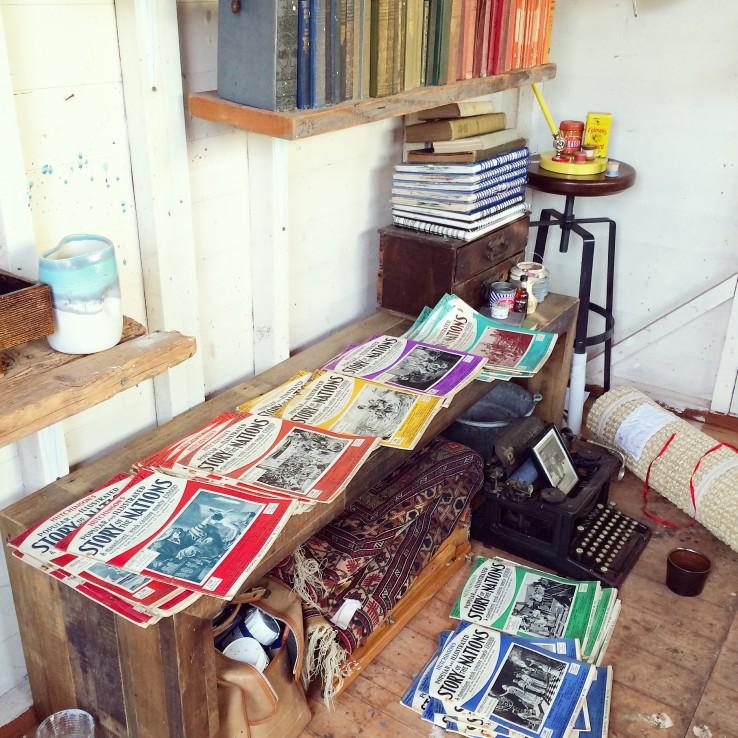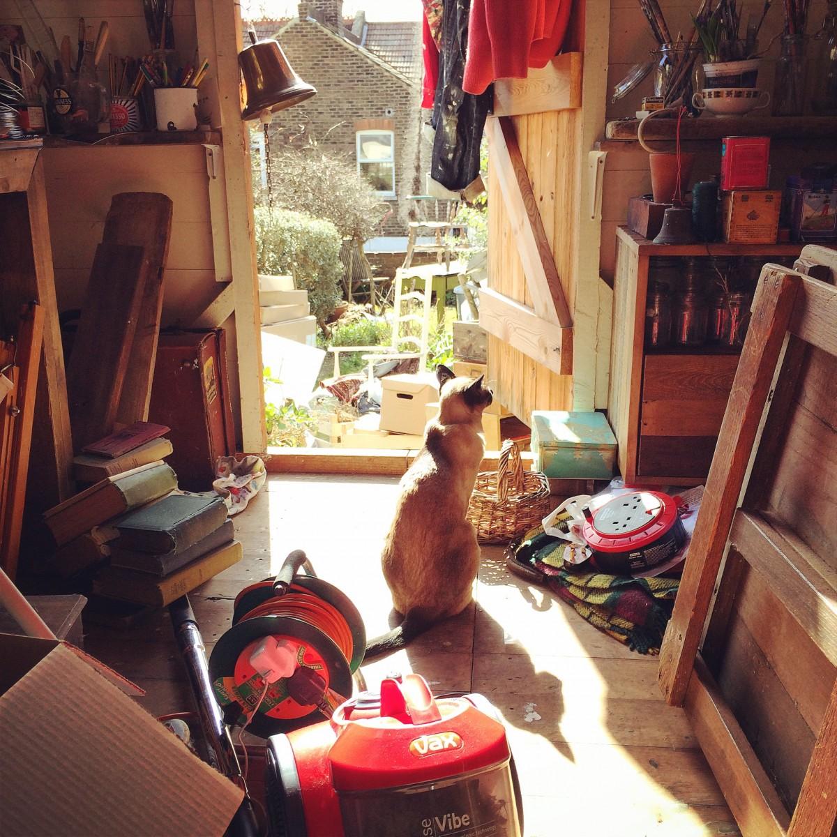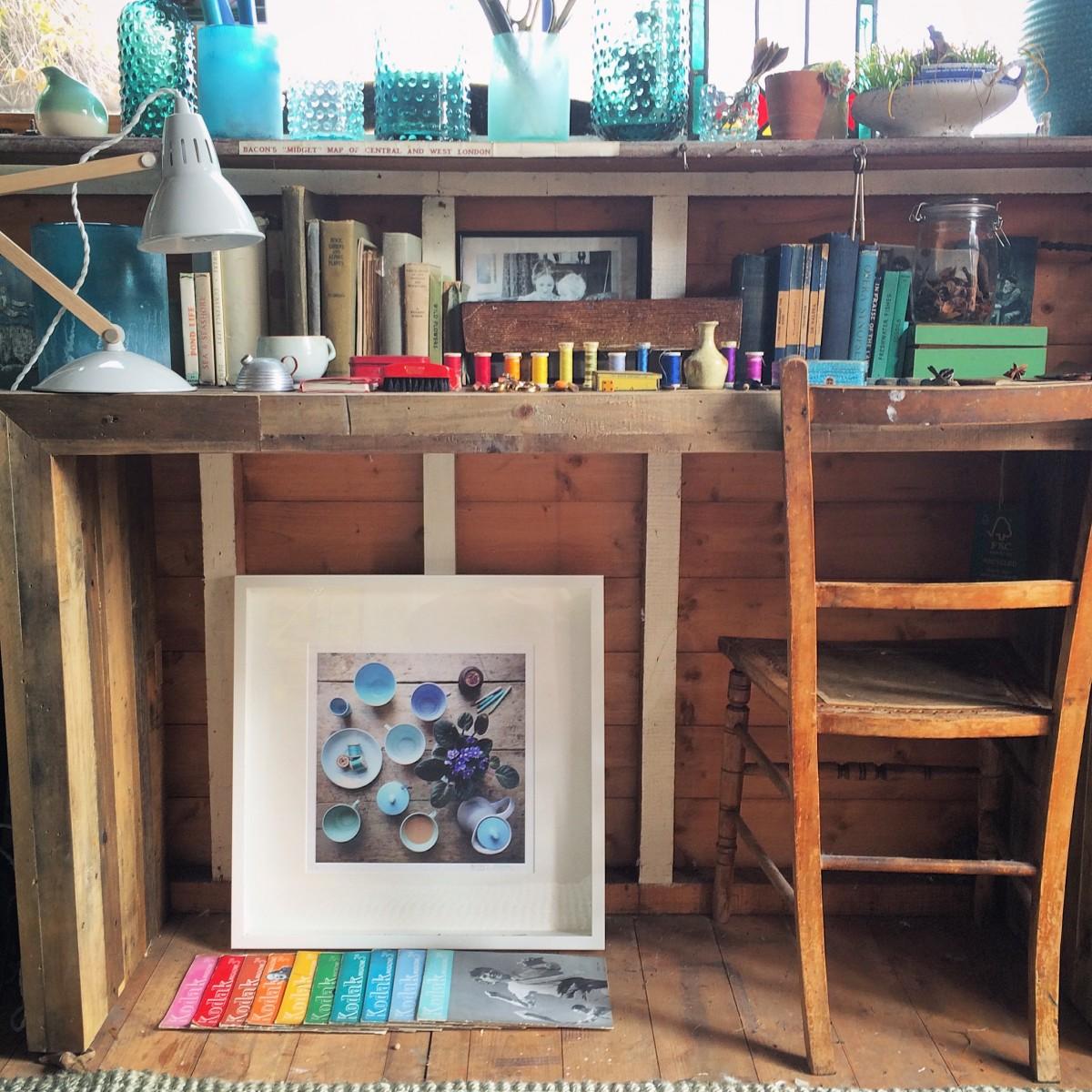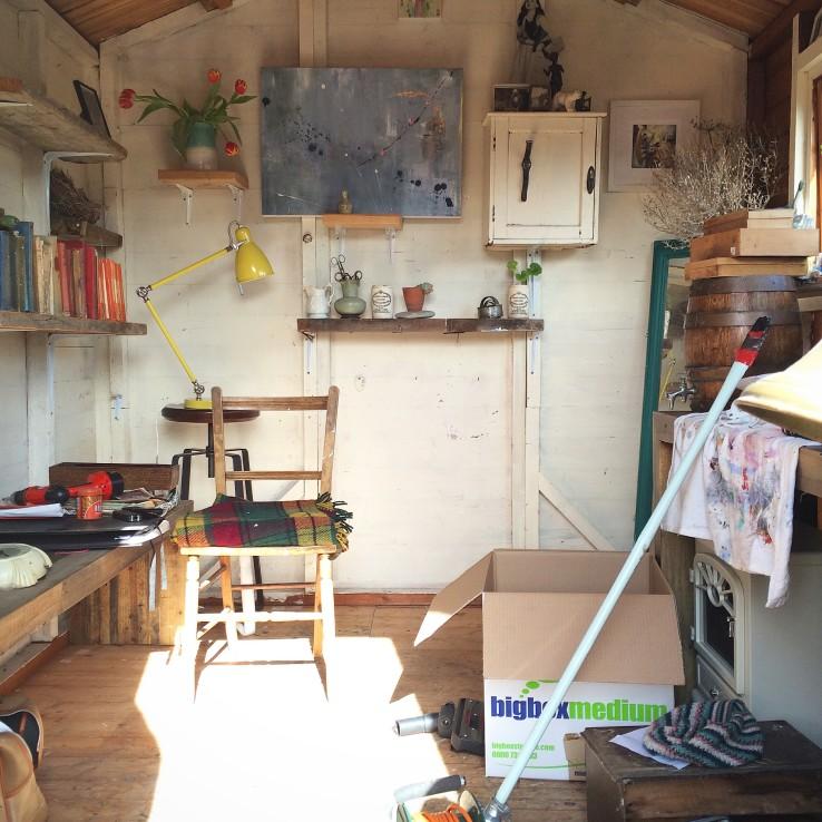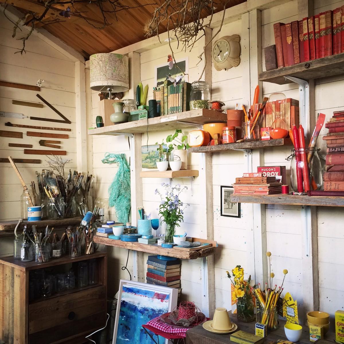 Su dueña la artista plástica y fotógrafa Philippa ha convertido la caseta del jardín de su propia casa de Brighton ( Inglaterra) en un taller donde crea sus obras.Su mundo personal y único,un universo para dejar volar la creatividad que le inspira,lleno de calidez.
