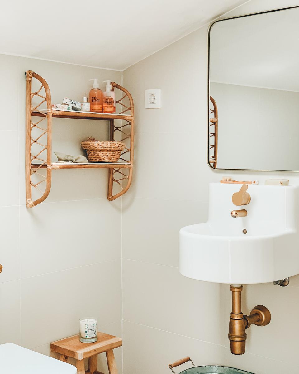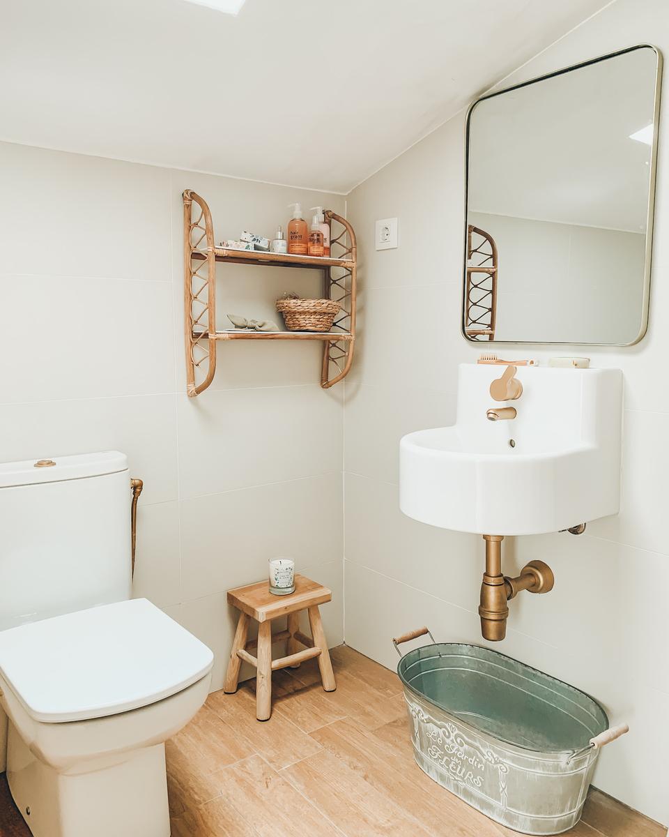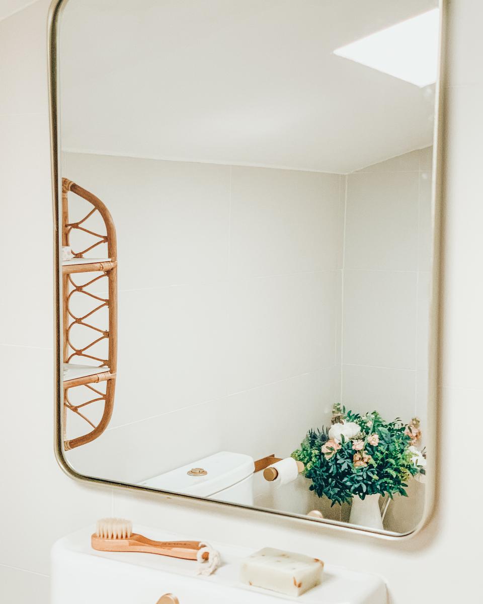 También cambiamos el anterior espejo con manchas de silicona por este con cantos dorados de Maisons du Monde.