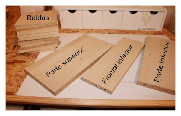 Desmontar el mueble y quedarte con las partes que te interesan. En mi caso , he usado la parte superior, e inferior, y todas las baldas.