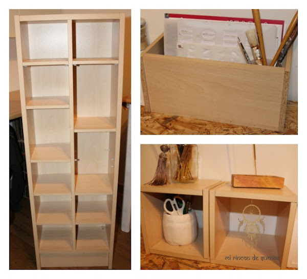 En esta habitación tenía un mueble de cds, que ya no usaba para ese fin, y que me ocupaba mucho espacio, tirarlo ya sabéis que no me gusta, y como nadie de mi entorno lo necesitaba, lo he desmontado y he creado unas cajas para tener todo en orden ,en el taller.