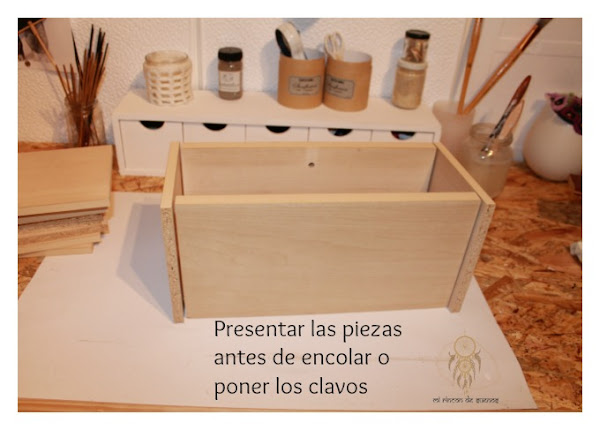 Yo he usado cola, pero es opcional, para reforzar la estructura lo ideal son los clavos de cabeza pequeña , para que no se note mucho.